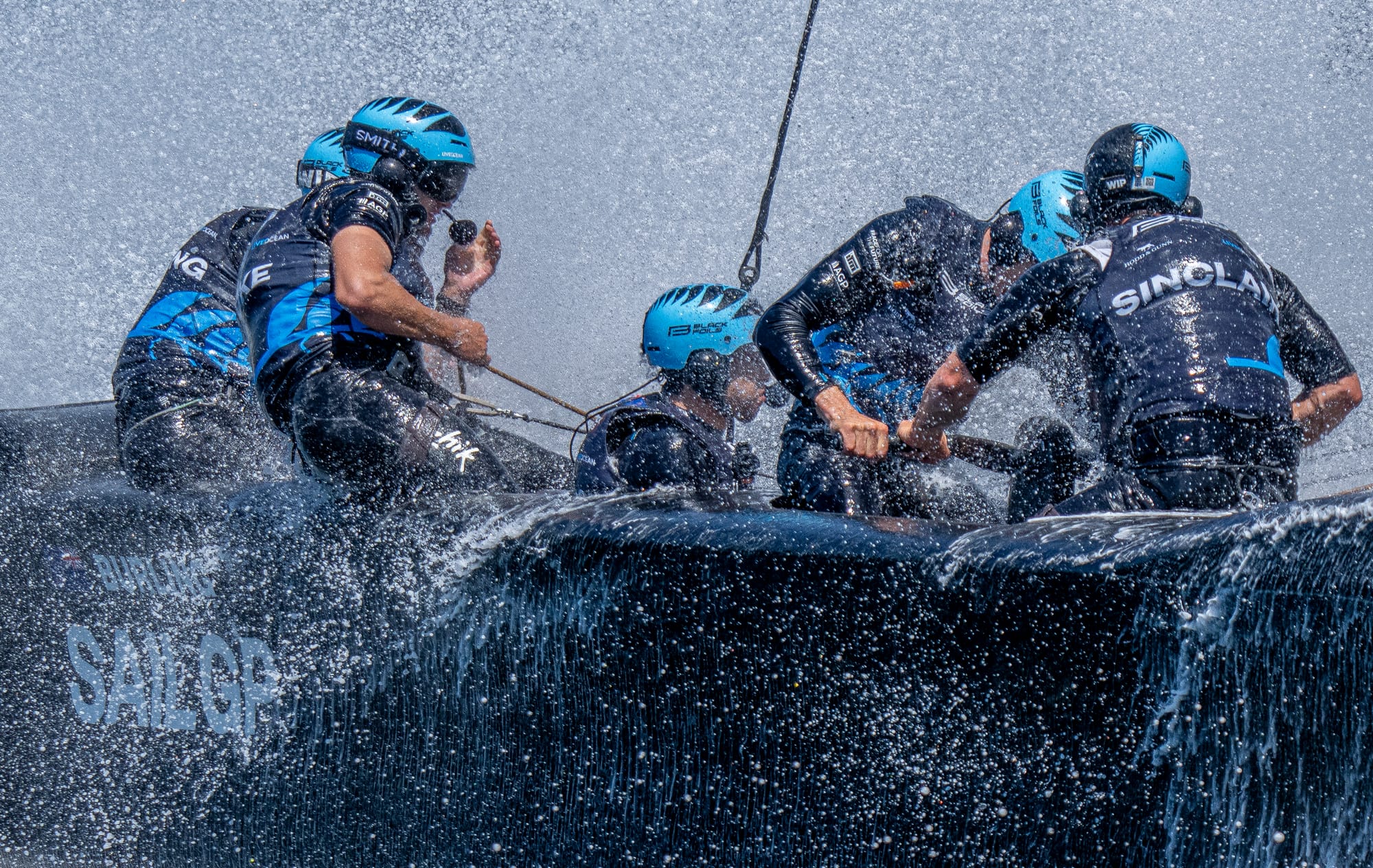 Two grinders provide the physical power needed to operate the hydraulic systems that control the wing, foils, and other onboard systems. Their work supplies the force required for rapid adjustments under load and remains one of the most physically demanding roles in the sport.